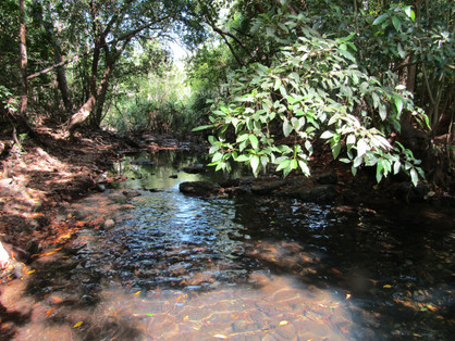 Saltwater crocs are not a problem in this waterhole, but there are lots of fish in the water. They nibble at one's legs. It's a bit alarming until you get used to it.