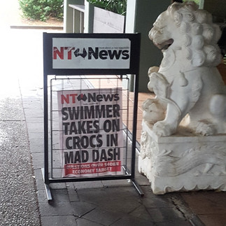 Our other literary (?) forays are daily with the NT News, the local newspaper. It’s renowned nationally for its unrestrained headlines and for the crocodile pics on its front page. Please admire the selection from my collection below, from the four months we have been here.