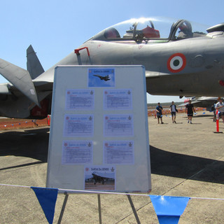 I have learned that fighter planes (a) all have pointy noses and (b) are all rather petite. They're like little buzzy, sting-y gnats. Here's the Sukhoi that is flown by the Indian air force – oh dear, a Russian-built plane. Not that its provenance deterred the many locals who wanted their photos taken with the Sukhoi and with the Indian visitors.