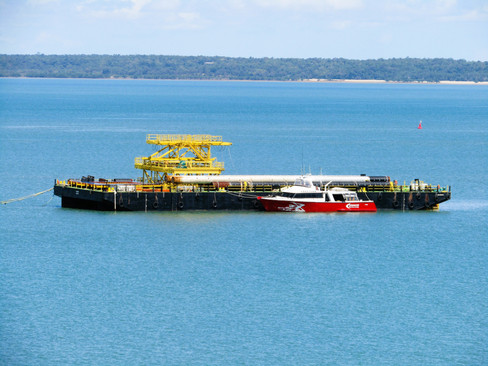 So, bulk liquids. Darwin is a major export hub for liquefied natural gas. More than 10% of Japan's global LNG imports come from Darwin. Which leads nicely to these photos of gas carriers! Here's a gas carrier coming in towards Darwin as we're cycling around East Point ...