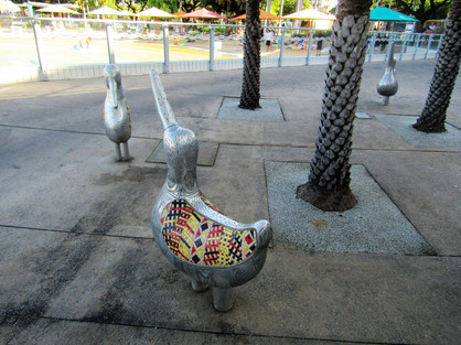 The Recreation Lagoon is free and is patrolled by lifeguards every day. The lagoon is separated from Darwin Harbour by a seawall, but sea water comes through fine mesh screens so it's continually refreshed. The mesh stops stingers and other unpleasant things coming in. In the lagoon are fish, algae and (apparently) some sort of benevolent jellyfish that keep the ecosystem balanced. But we've never seen the jellyfish.